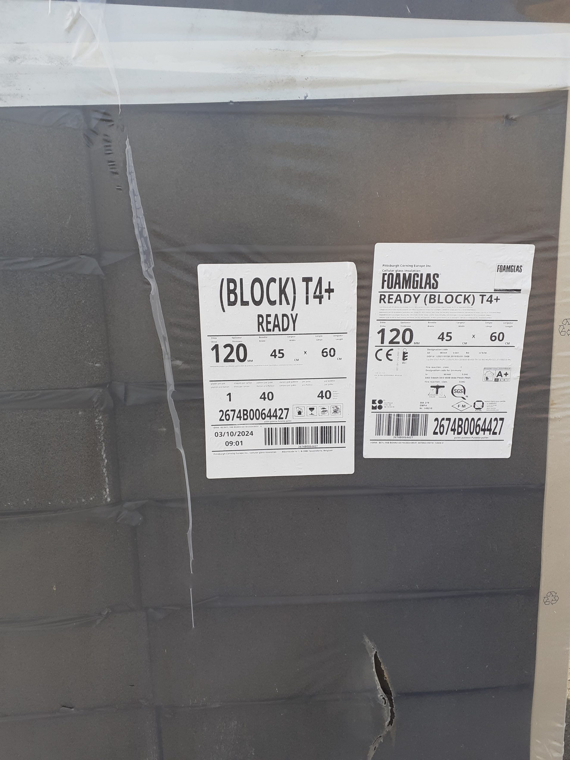 Isolant spécial couverture chaude Foamglas #1054 L.60cm x l.45cm x ép.12cm 2,00 € 66 U